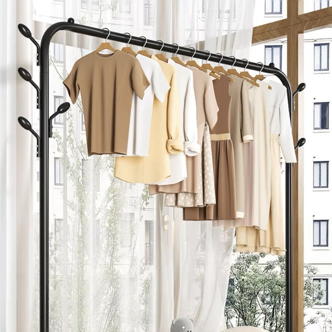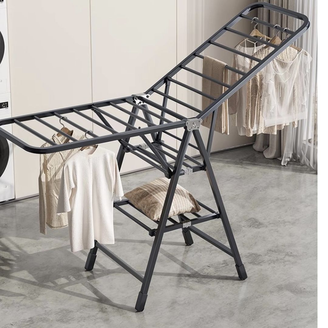 - 落地晾衣架:不介意占用地面空间的话,落地晾衣架也不错。无需爬高和安装,展开就能用。