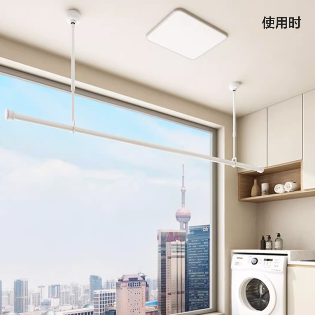 - 伸缩杆:可选择承重稍高的款型,只要有两面墙就能用,晾晒日常轻便衣物,免去安装烦恼。