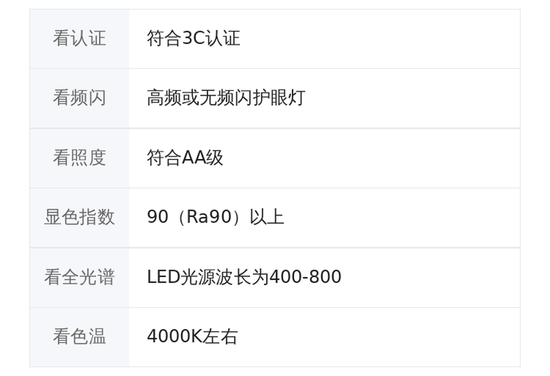 要符合AA级认证,全光谱设计,无蓝光,无频闪。均匀度好,能将整个桌面均匀明亮。