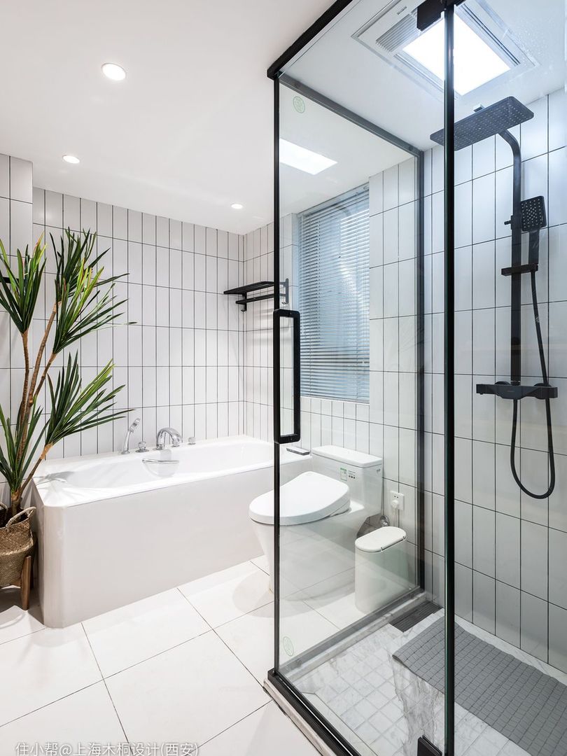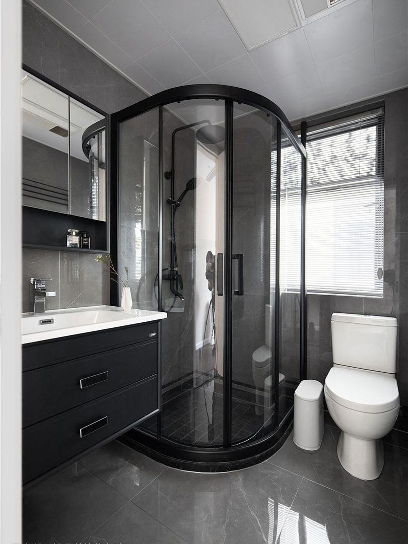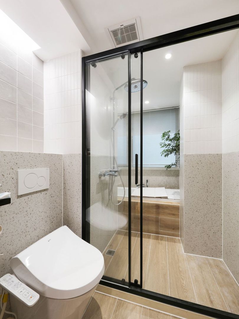多使用推拉门和平开门来做干湿分离,安装简单、节省材料和空间,实用且造价较低,适合三面墙围合的淋浴区。