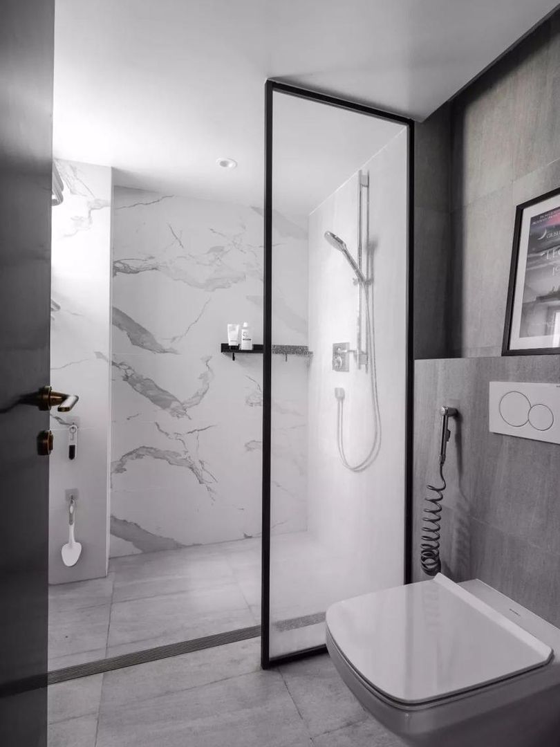 - 对颜值要求高,推荐玻璃隔断型,搭配长条地漏更好用。