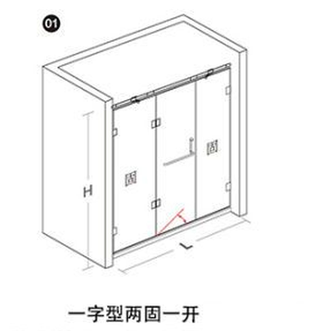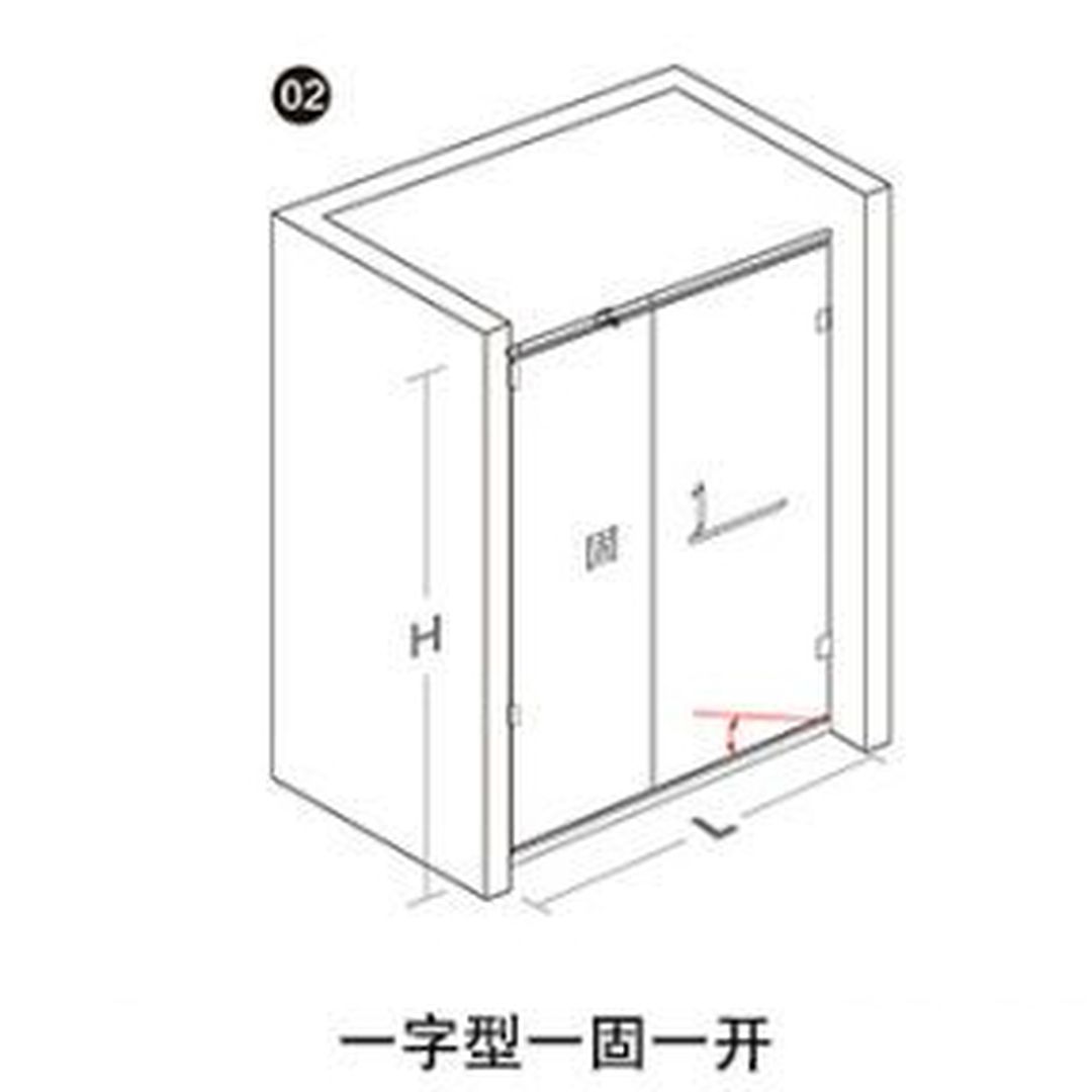另外,一字型的淋浴房,平开门会根据空间大小设计不同的开合方式——大户型选择一字型两固一开、一固一开;小户型选择单开。