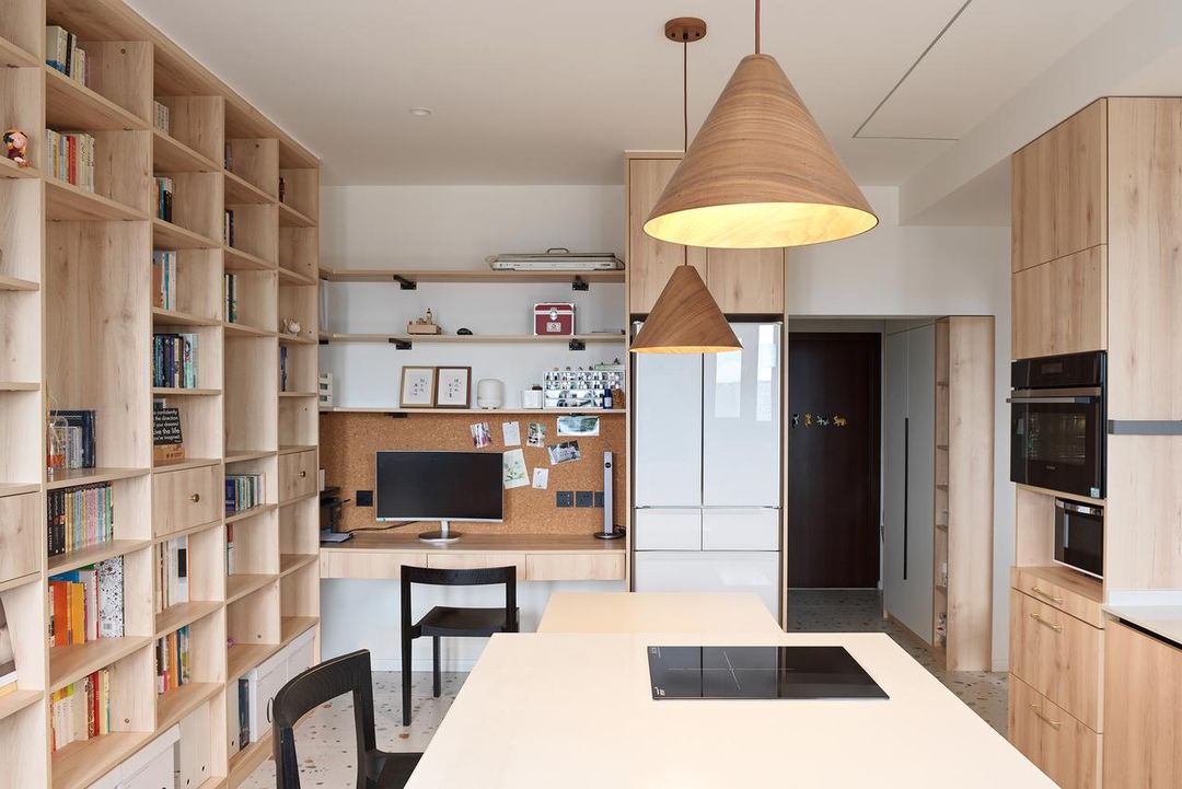 做餐厨和书房开放格局,做饭时视线也能照顾到孩子。