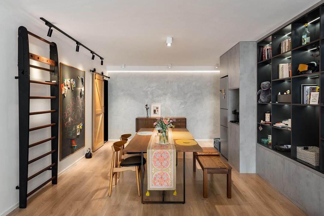 客餐厅:孩子的成长需要陪伴,边工作边陪伴、边做饭边照看孩子可以让客厅、餐厅、书房“空间重叠”。