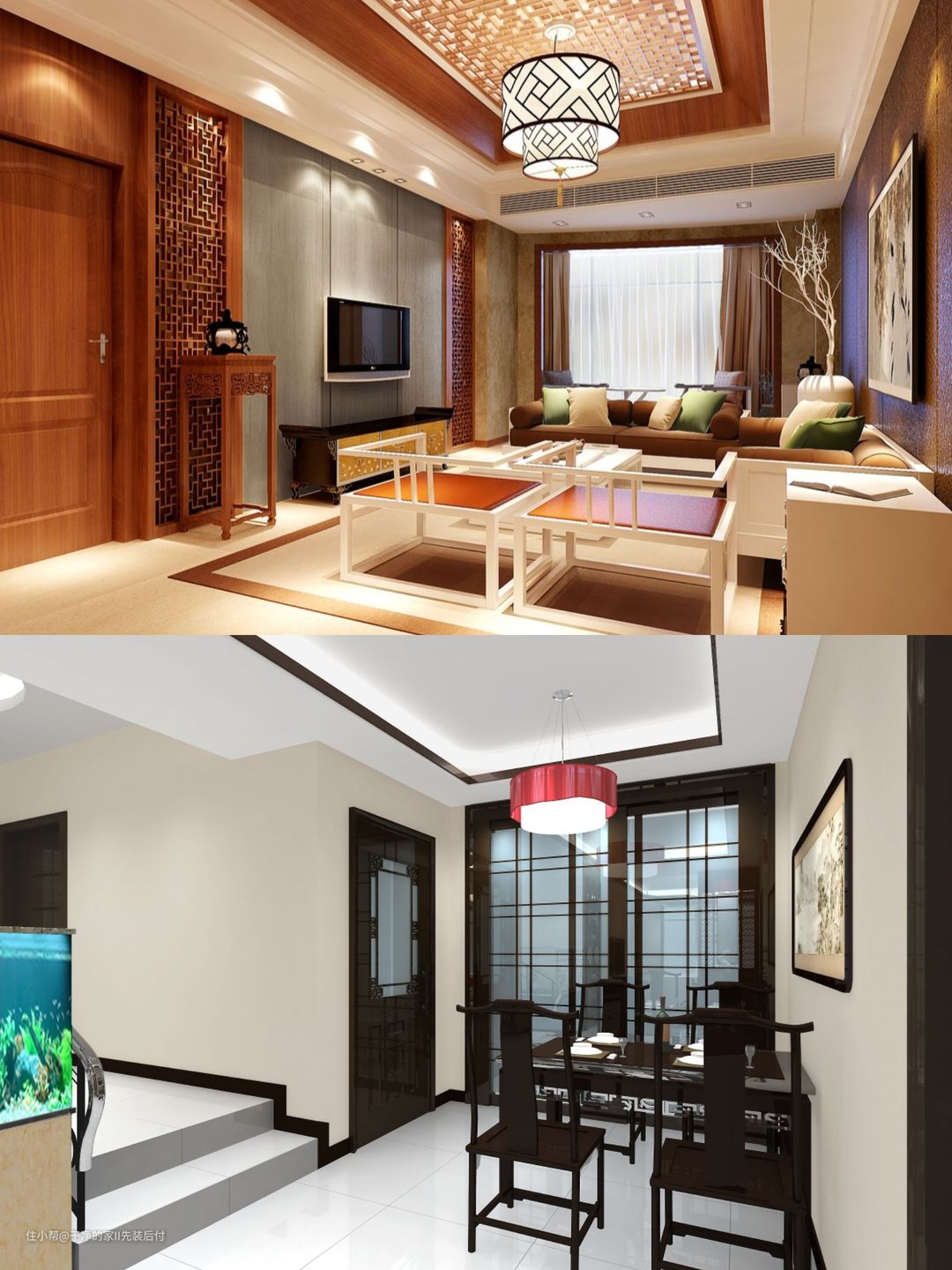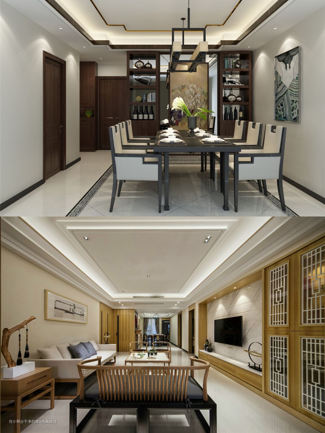 在设计上,新中式吊顶注重对称与平衡,强调线条的流畅与简洁。它可能采用木线收边,与灯饰、家具等元素相结合,营造出一种和谐统一的空间感。同时,新中式吊顶也注重细节处理,如灯槽、检修孔等位置的设计,既保证了美观性,又兼顾了实用性。