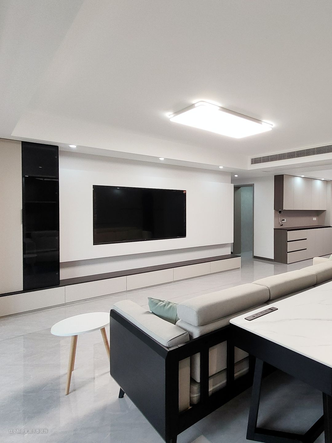 第三种是现在很流行的落地电视柜,这种柜子我建议把插座隐藏起来比较好看,电视柜高度一般在20到30公分左右,插座预留高度离原始地面高度15到20公分左右即可,