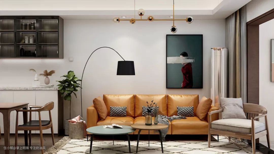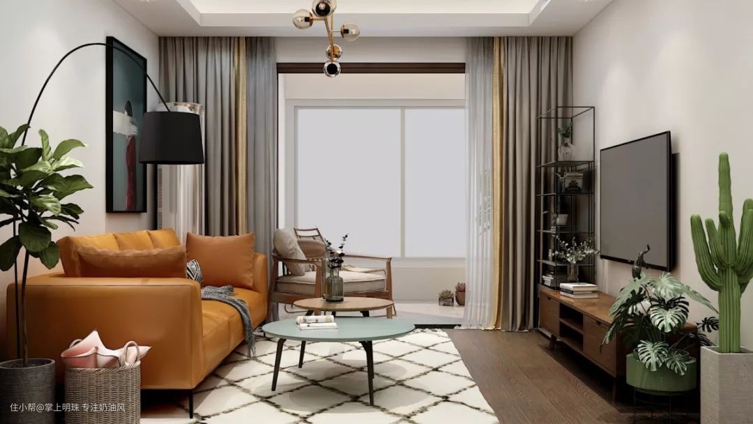 本案业主为一对小年轻,是为结婚准备的婚房。平日里就小两口住,次卧作为书房和衣帽间使用。父母就住在附近,所以没有预留客卧。由于万科精装深色基调,在硬装不做大改动的前提下,整个风格定位在带中古风格的现代北欧。深色实木家具搭配橙色沙发,体现空间质感和时尚感。主卧选用女主人喜爱的墨绿色乳胶漆墙面,做定制妆台和卡座,完善卧室功能。