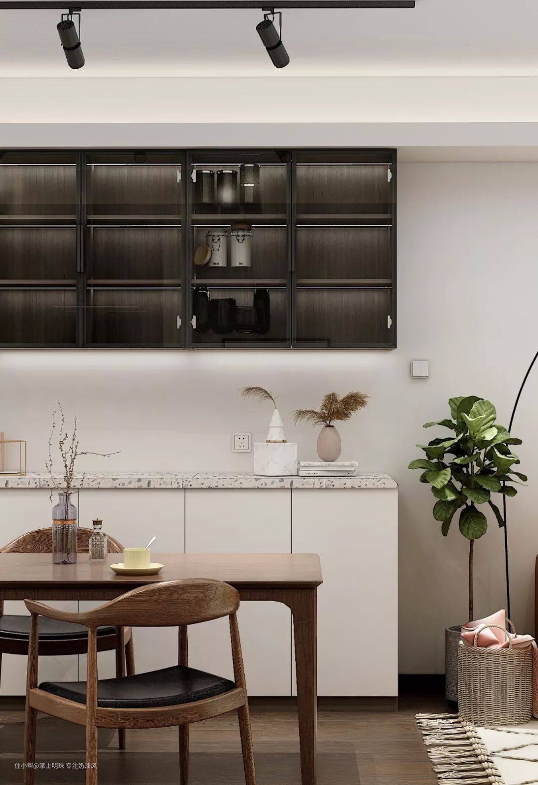 定制餐边柜搭配玻璃柜门,精致感扑面而来。