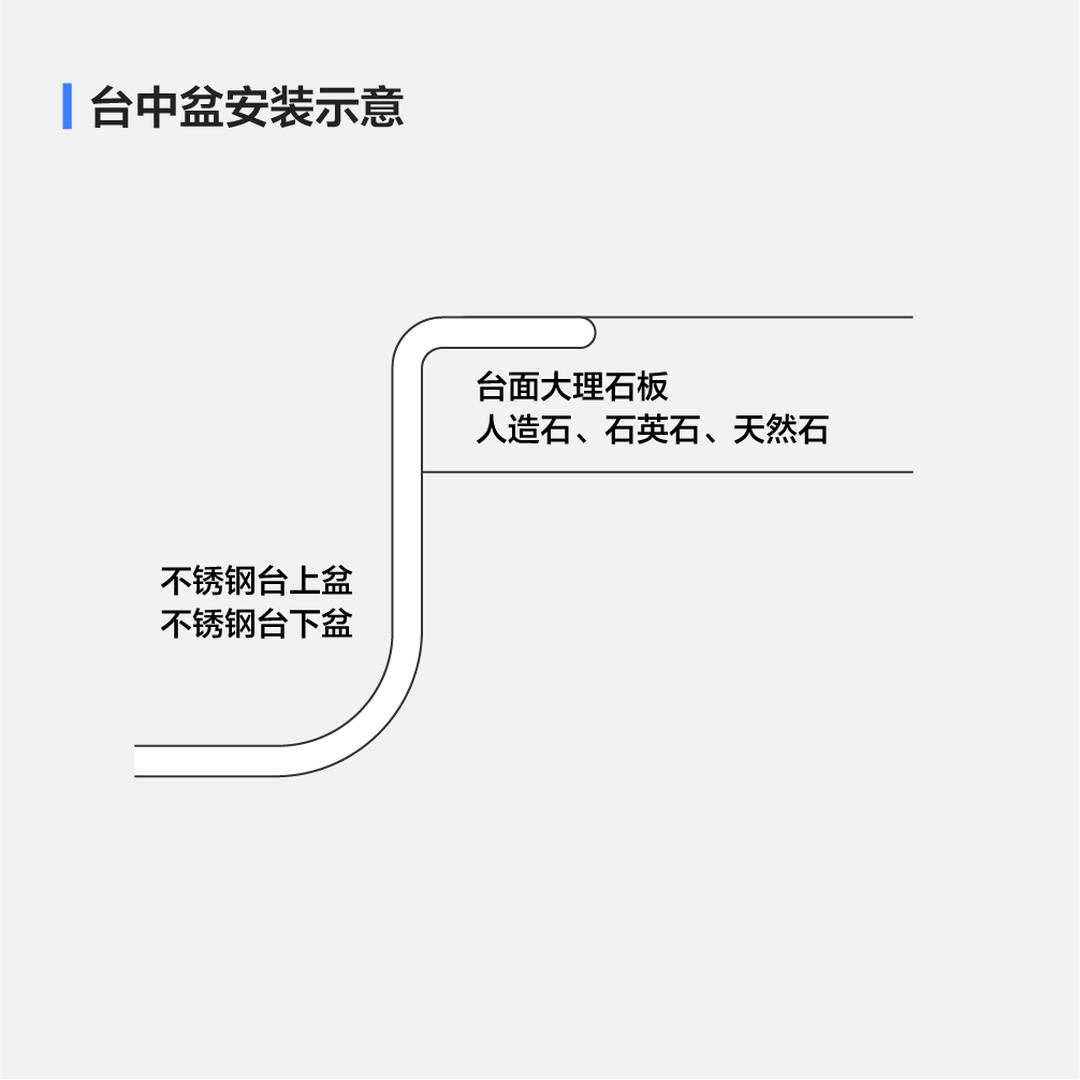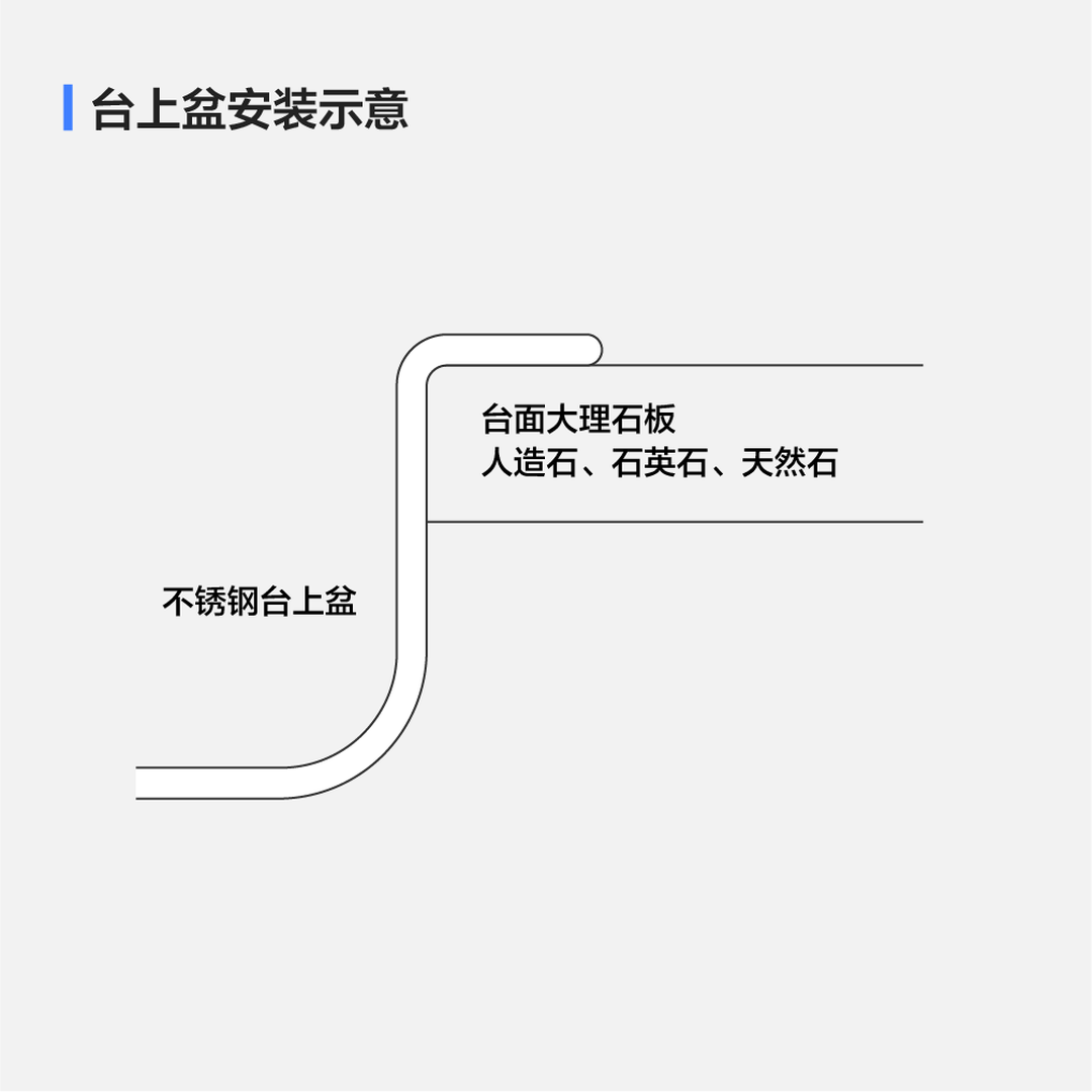 台上盆安装方式最简单,安装师傅只需将水槽搁在台面上,周围打上一圈硅胶(或玻璃胶)密封即可。