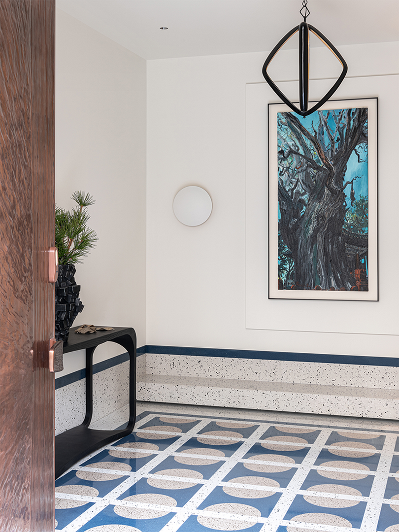 - 玄关、过道、阳台与客厅相连,可以通过花砖增加空间存在感。