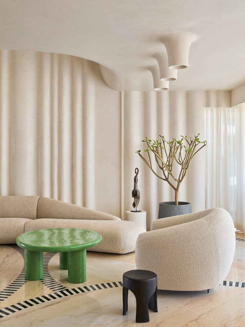 - 除了通刷,还可以选择半墙或局部涂刷,搭配渐变效果或者石膏线。