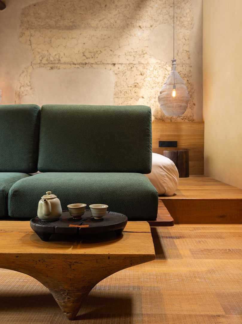 - 由于空间有限,通铺也不会显得花哨,反而起到类似于地毯的效果,提亮空间。