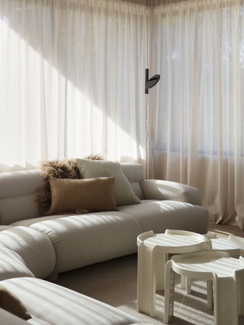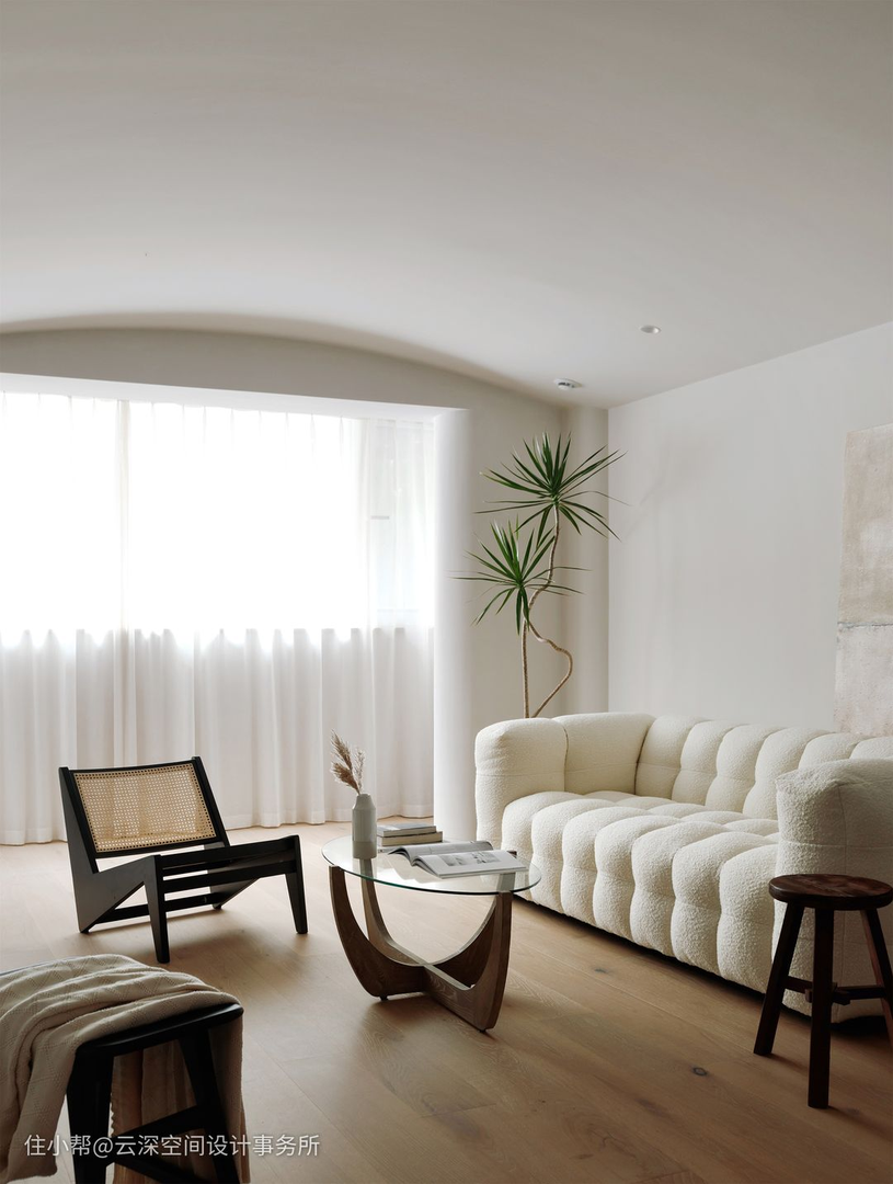 - 客厅、阳台等对遮光度要求不高,可以只用纯白纱帘不用布帘,作为空间背景色。