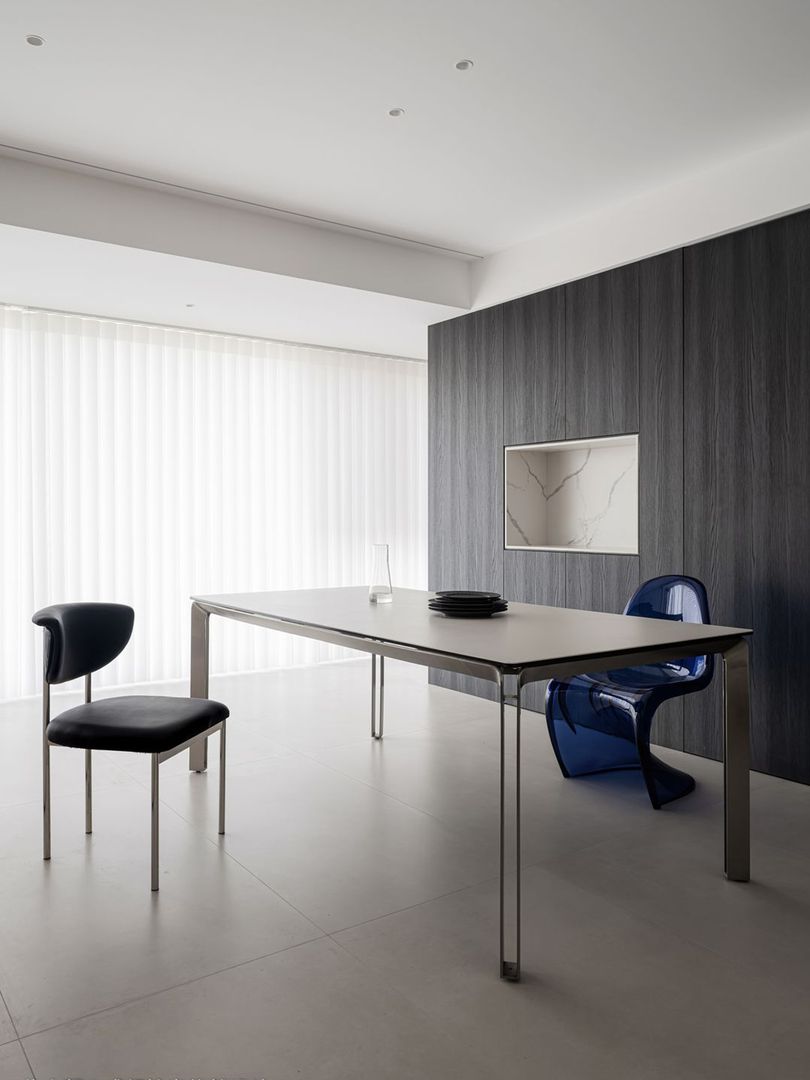 - 黑色地板用的很少,适合大空间,家具搭配浅色系或者相近的黑灰色系,细节上搭配大理石、黄铜、不锈钢等材质,简约又高级。