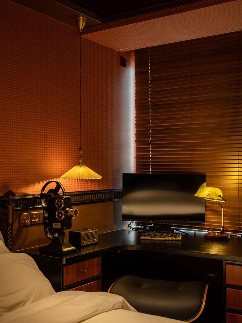 - 常见色彩较深的复古风,大面积深色让视觉下沉,将空间内的复杂颜色和家具统一起来。