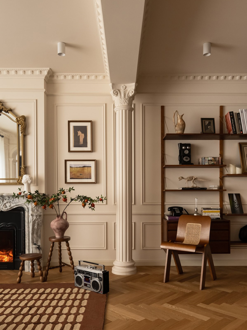 - 可搭配大面积使用的石膏线、护墙板、深色家具等。