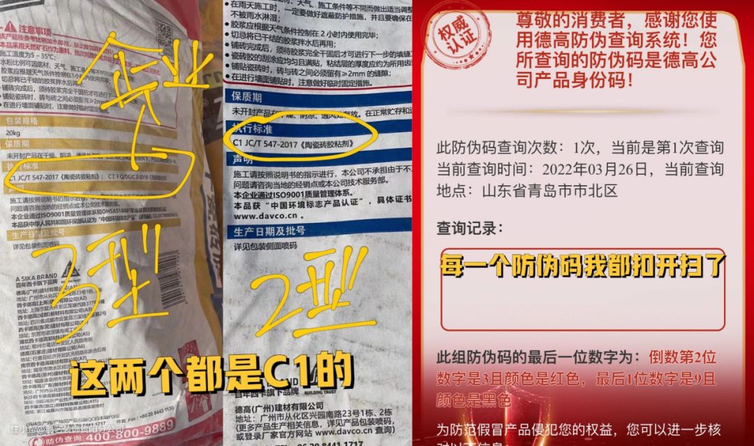 3)瓷砖粘接剂和水泥砂浆对比