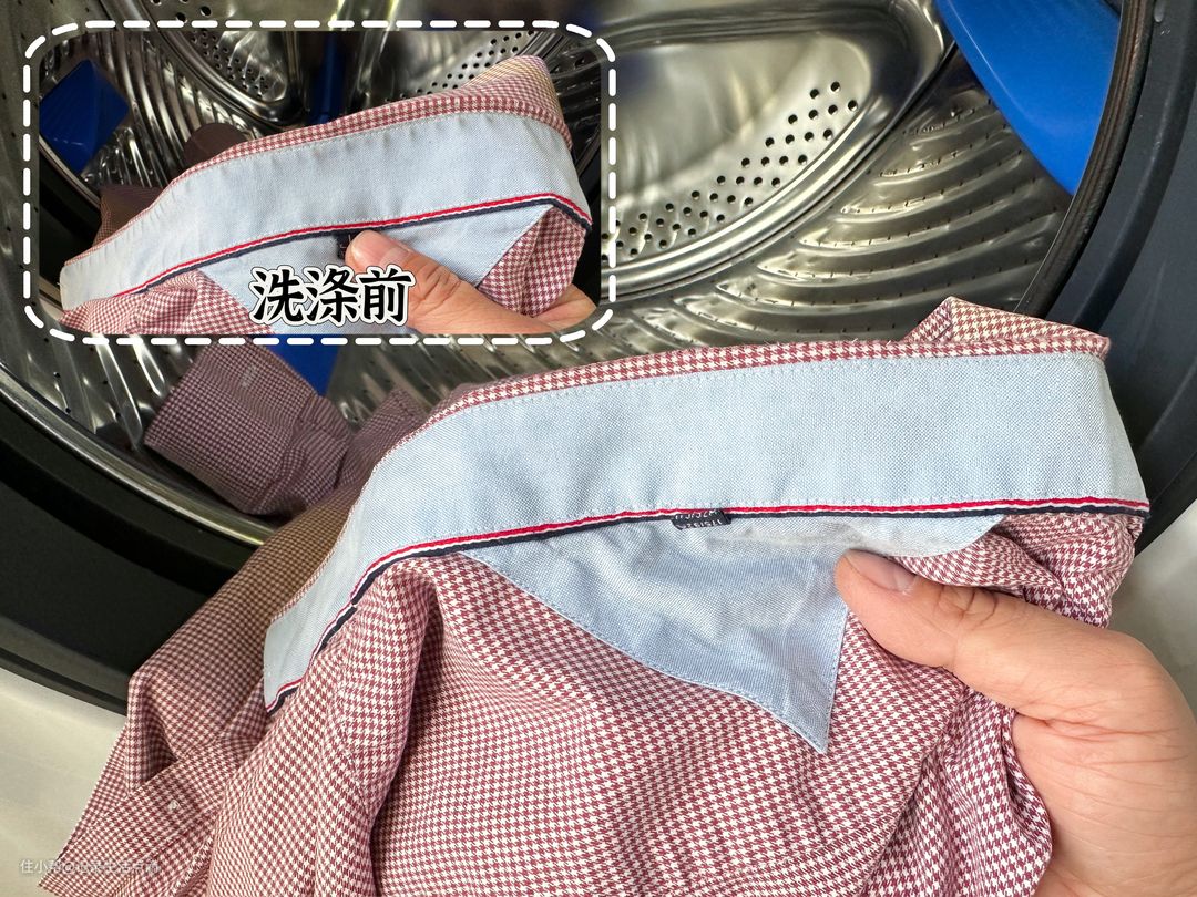 众所周知,衬衫领口上的污渍是比较难洗的,之前家里的旧洗衣机洗完后还会残留淡淡的污渍,所以每次在机洗之前都会手动搓洗一番,甚是麻烦,自从家里换了TCL超级筒洗衣机T7H后就省心多了,直接往洗衣机里一扔即可,洗完后都是干干净净的,效果非常明显,这就是高洗净比洗衣机的优势,净显实力!