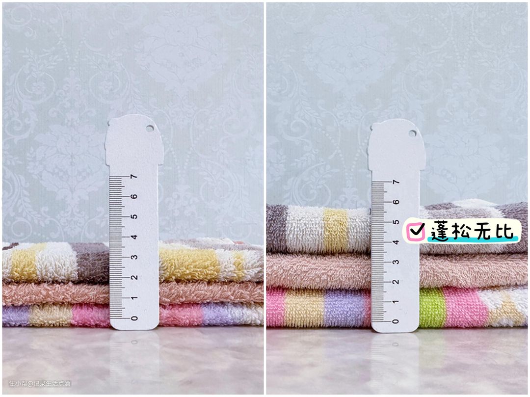 来实测下烘干效果,用毛巾进行测试,洗烘前后足足蓬松了2cm多,效果十分明显。