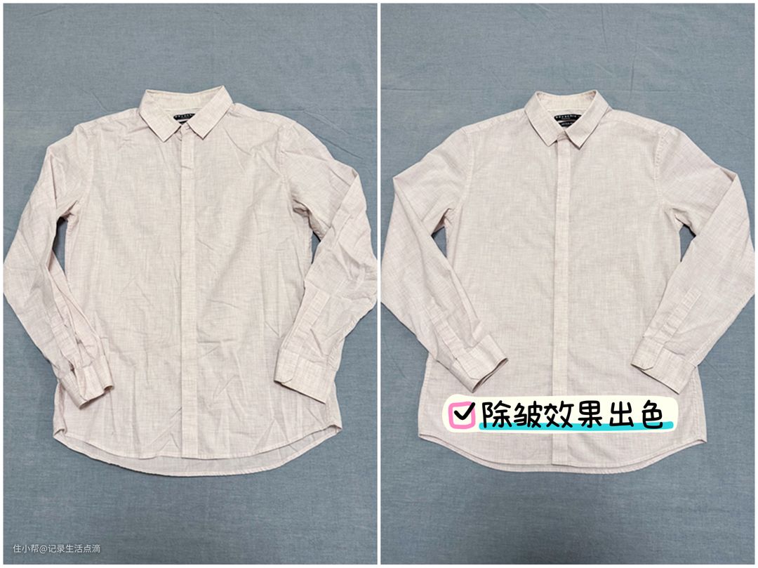 烘干的除皱效果也十分不错,原本布满褶皱的衬衫,经过洗烘后褶皱都消失了,除皱效果堪比挂烫机。