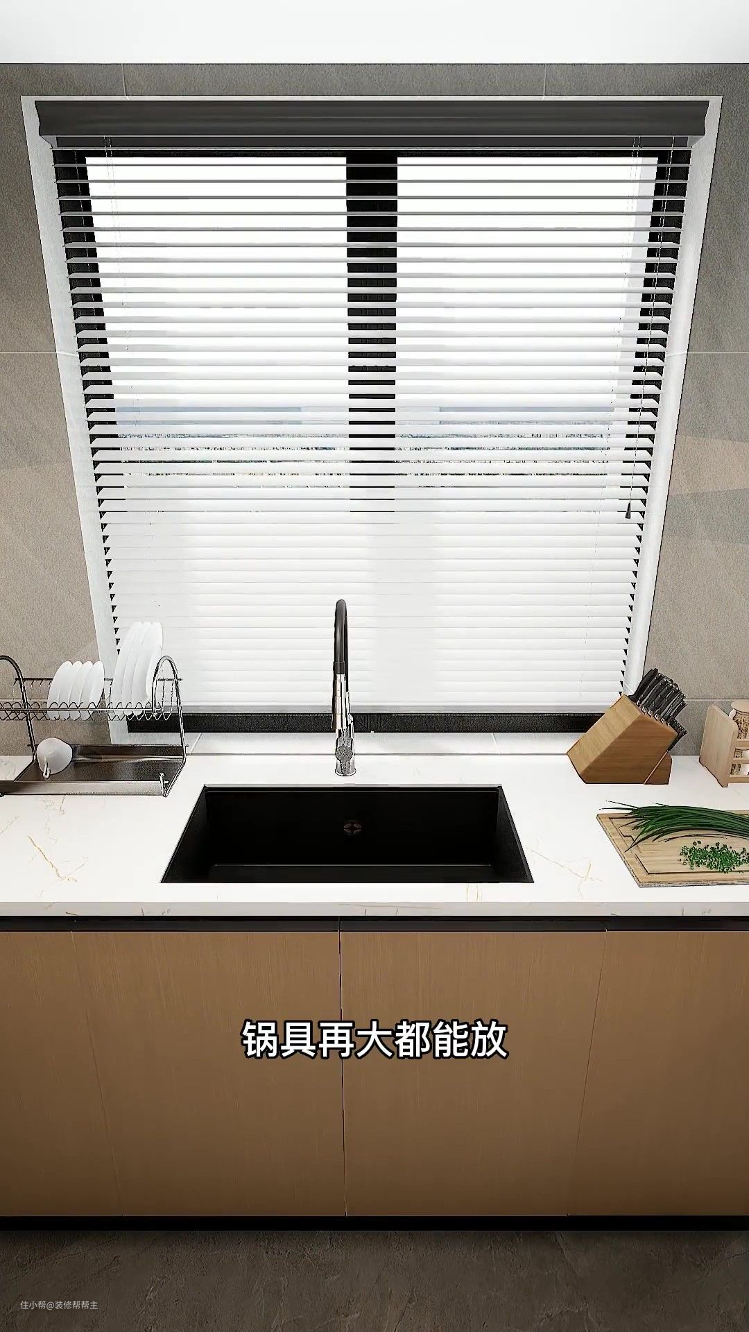 不做双槽洗菜盆,而是做个大单槽,锅具再大都能放,提高厨房的清洁能力,实用更省心。