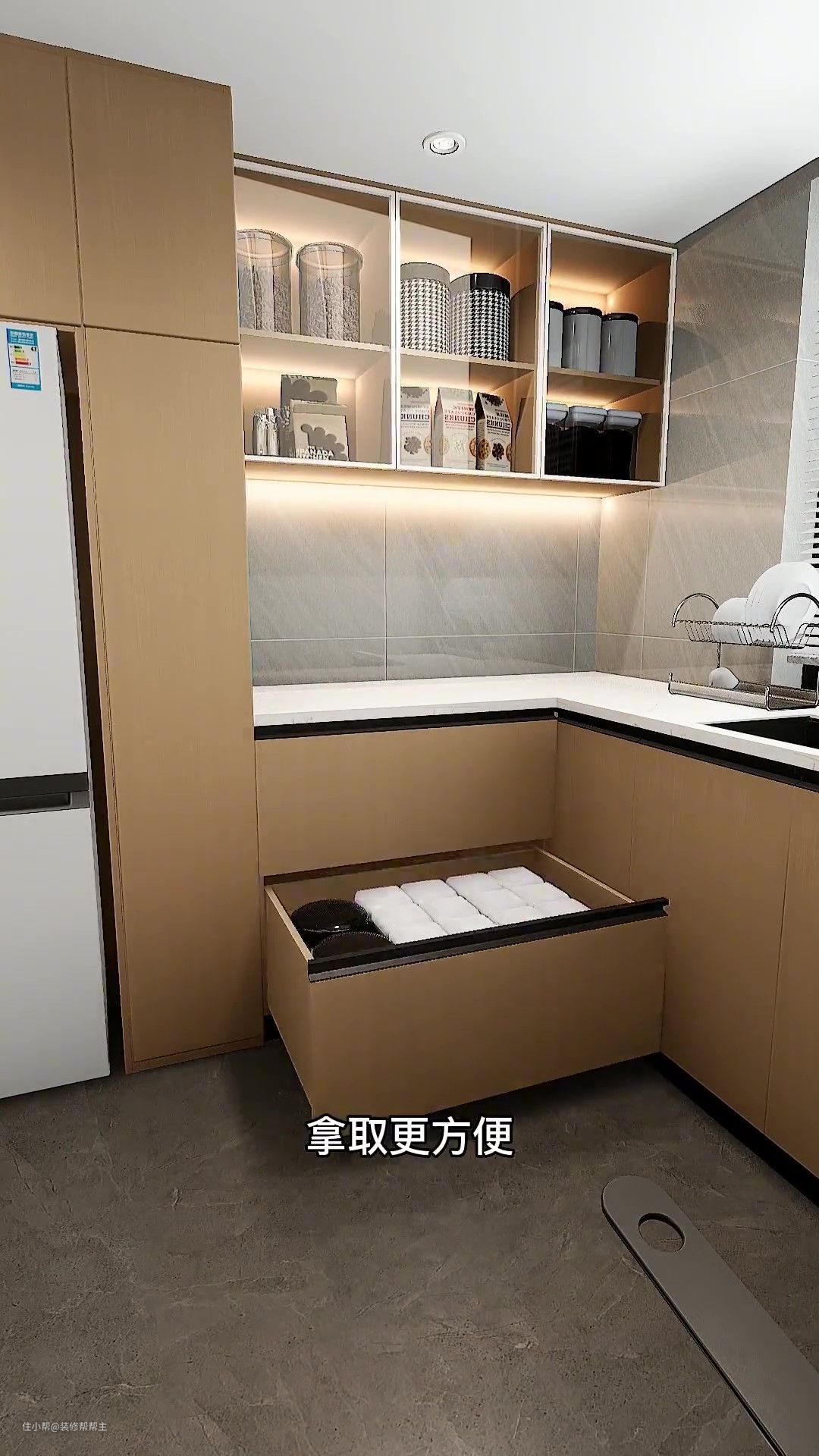 地柜不做层板,而是改做成抽屉,拿取更方便,不用再蹲下身去翻找物品。