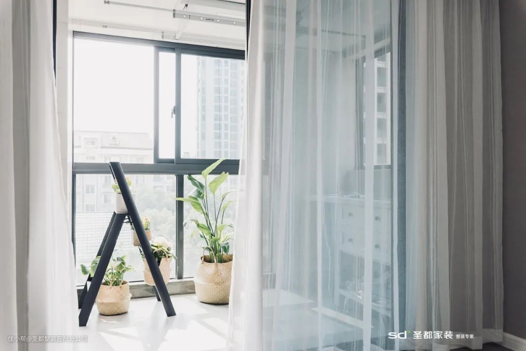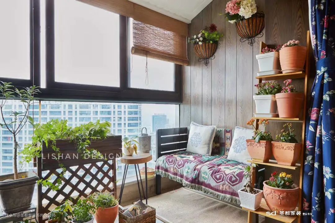 封上的阳台,阻隔了外界的灰尘和喧嚣,与室内相连通,也在设计上有了更多的可能。