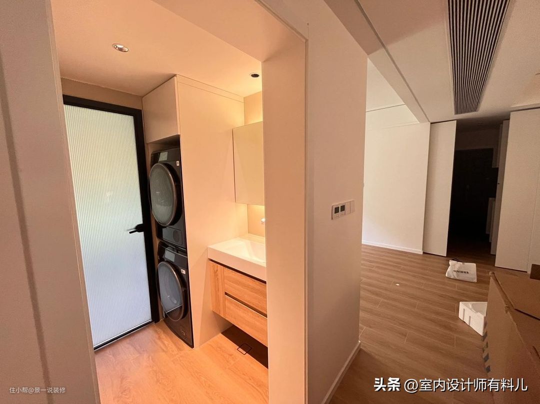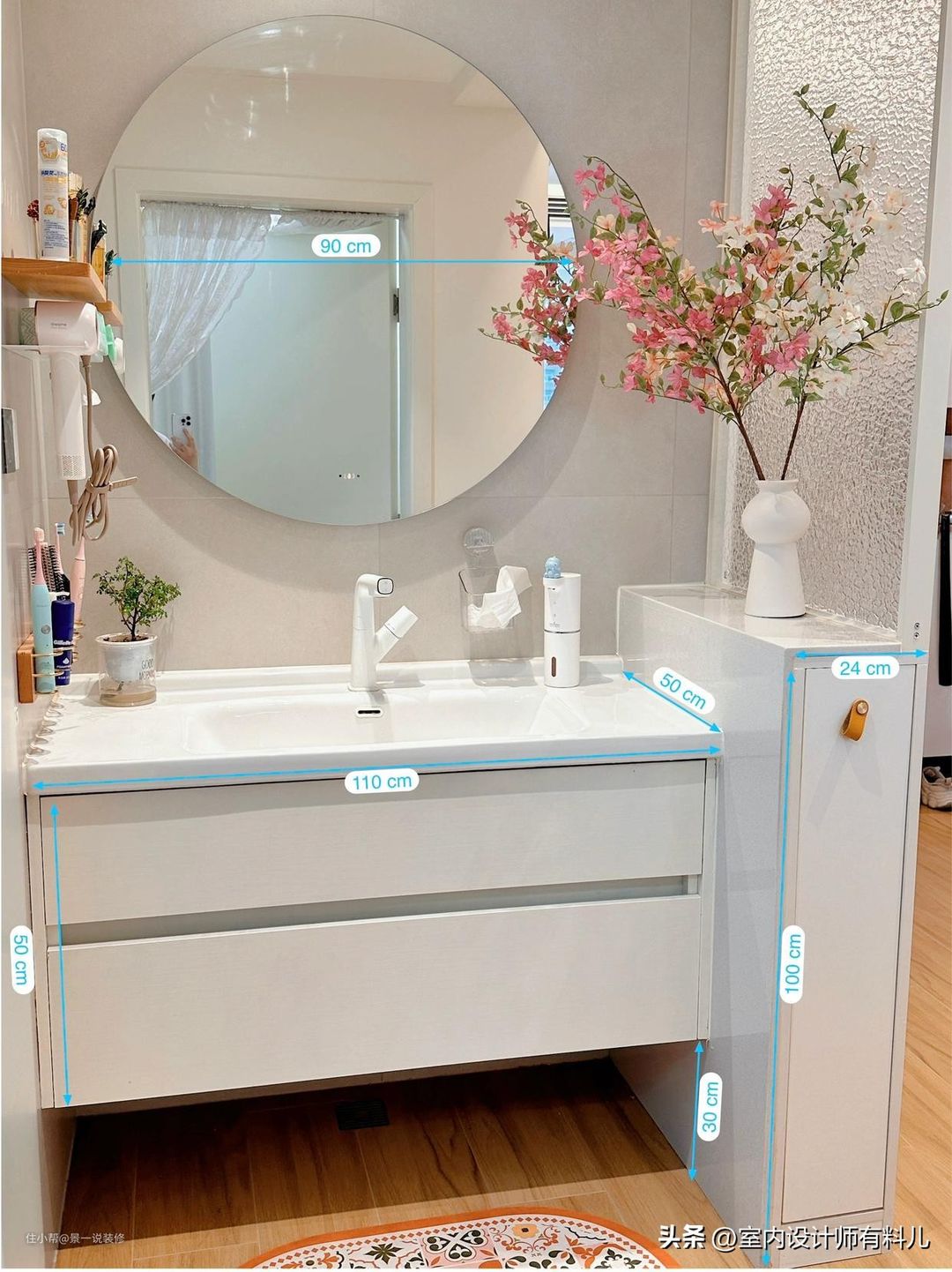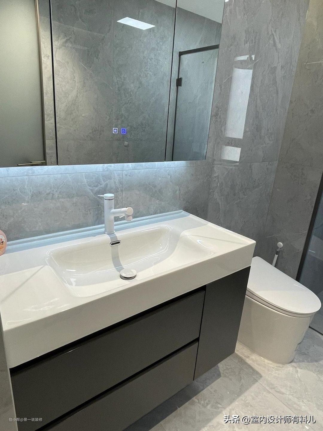 因为真正等到你入住以后发现,浴室柜、台面上摆的都是牙膏牙刷、洗面奶的瓶瓶罐罐,花花绿绿的瓶子,再加上五颜六色的毛巾,显得杂乱无章,一点也不好看。