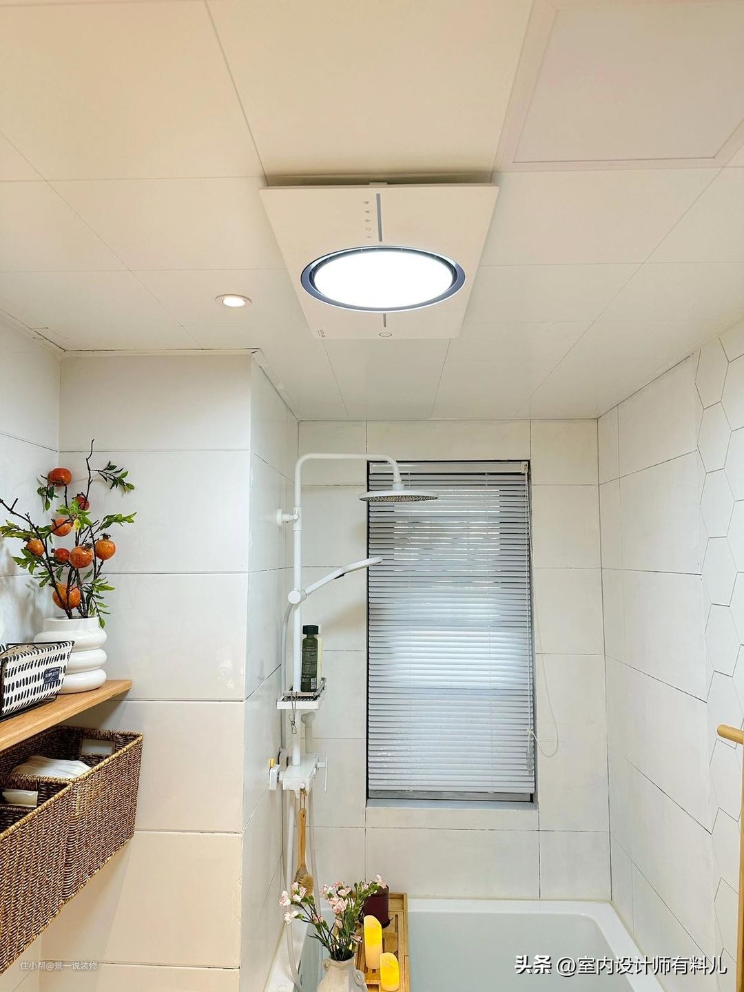 浴室里装个灯暖浴霸,这样冬天洗澡的时候,就不怕会受凉了,身体暖暖的心情也会变好。