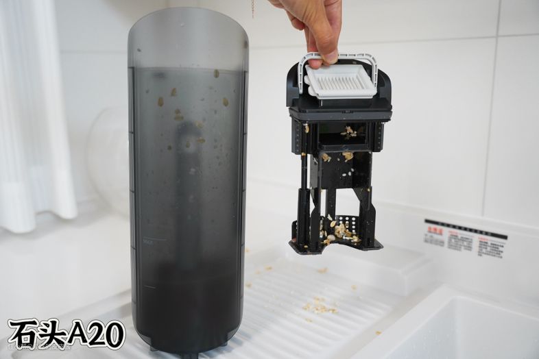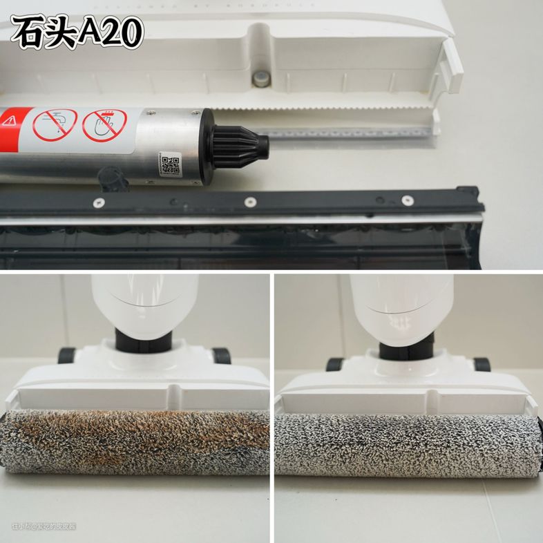 最后,石头A20是通过智能变频算法,在识别机身处于低处清洁状态时,智能匹配相应的吸力和水量,才实现了躺平清洁,并非像追觅、添可自身实现的水气分离技术。目前使用下来,并未发现漏水情况,但是污水箱容量太小,平时抽拉提手需小心。