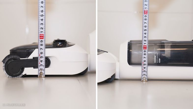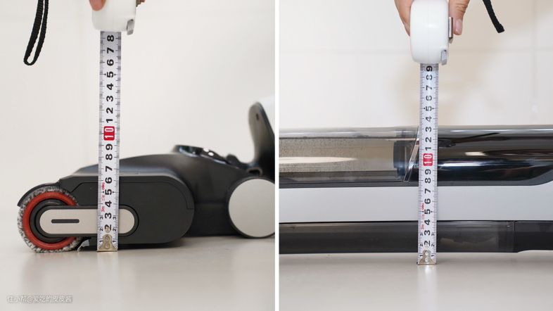 如果存在着豪厘之差,洗地机真的就塞不进去,就很心塞。建议入手之前,最好还是测量下家具的底部高度,选择机身最薄的那一款就对了,至于刷头的高度,并不太影响到躺平清洁,而且三款洗地机的刷头高度皆控制在10cm以内。
