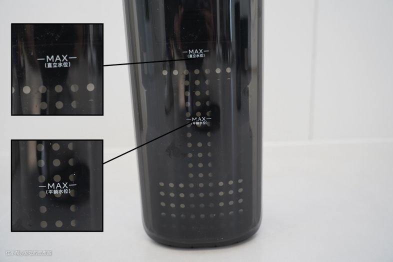 洗地机不管是直立还是躺平的工作状态,它的续航能力,取决于电池、清水箱和污水箱三者的容量大小,容量越大越省心。但是本次却发现三台洗地机的污水箱上,都多了一个平躺水位刻度线。