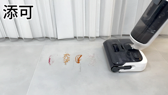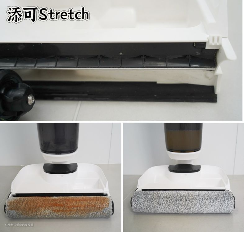 添可stretch 针对于地面上密集的干湿垃圾,仅需向前推动,即可完成清洁,无残留拖影,表现优秀。