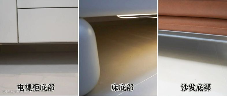 ● 较深低矮区域,比如床底,看躺平洗地机的机身高度,较浅低矮区域,则看刷头高度。