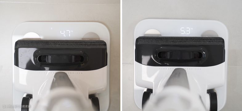 石头A20整体机身自重(包含电池)实测重量为4.7kg,在清水箱装满的情况下,实测重量为5.3kg,机身自重排位居中。