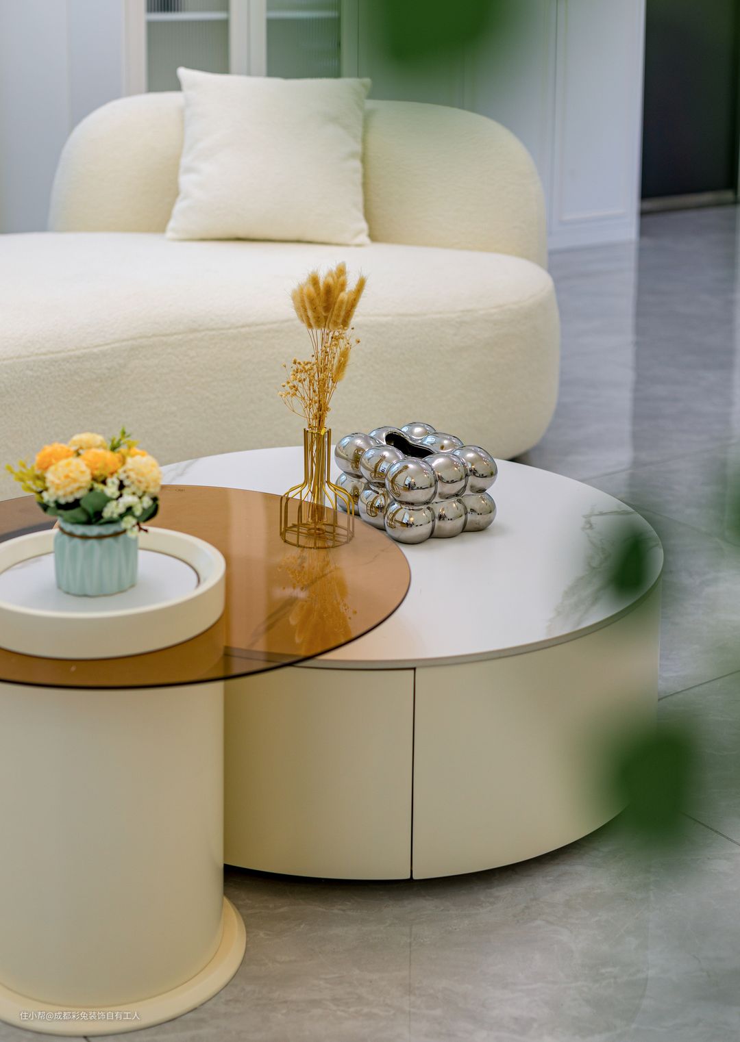 简约的茶几和边几,如雕塑般简洁而不失优雅,为空间增添了一份艺术的韵味。