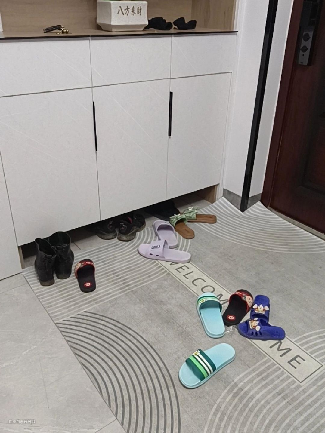 鞋子还会被扫地机器人推着满屋子跑,显得很乱。