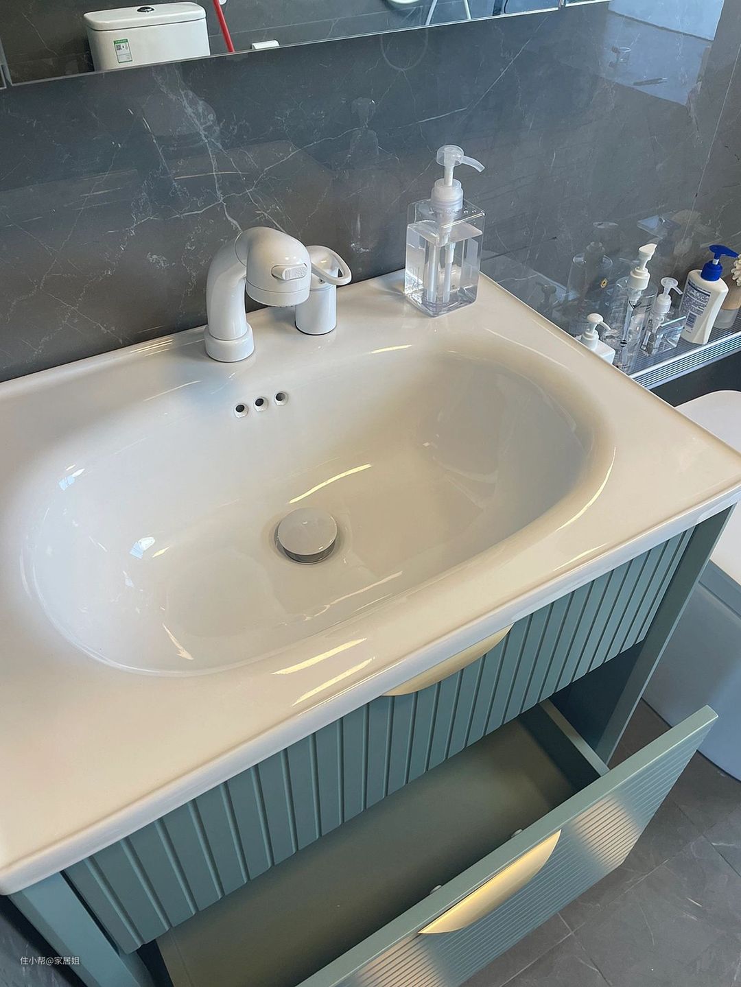 陶瓷一体盆不像岩板盆那样,会出现掉底的情况,也不存在可以藏垢的缝隙,打理起来太省心了,家务量直接省掉一半。
