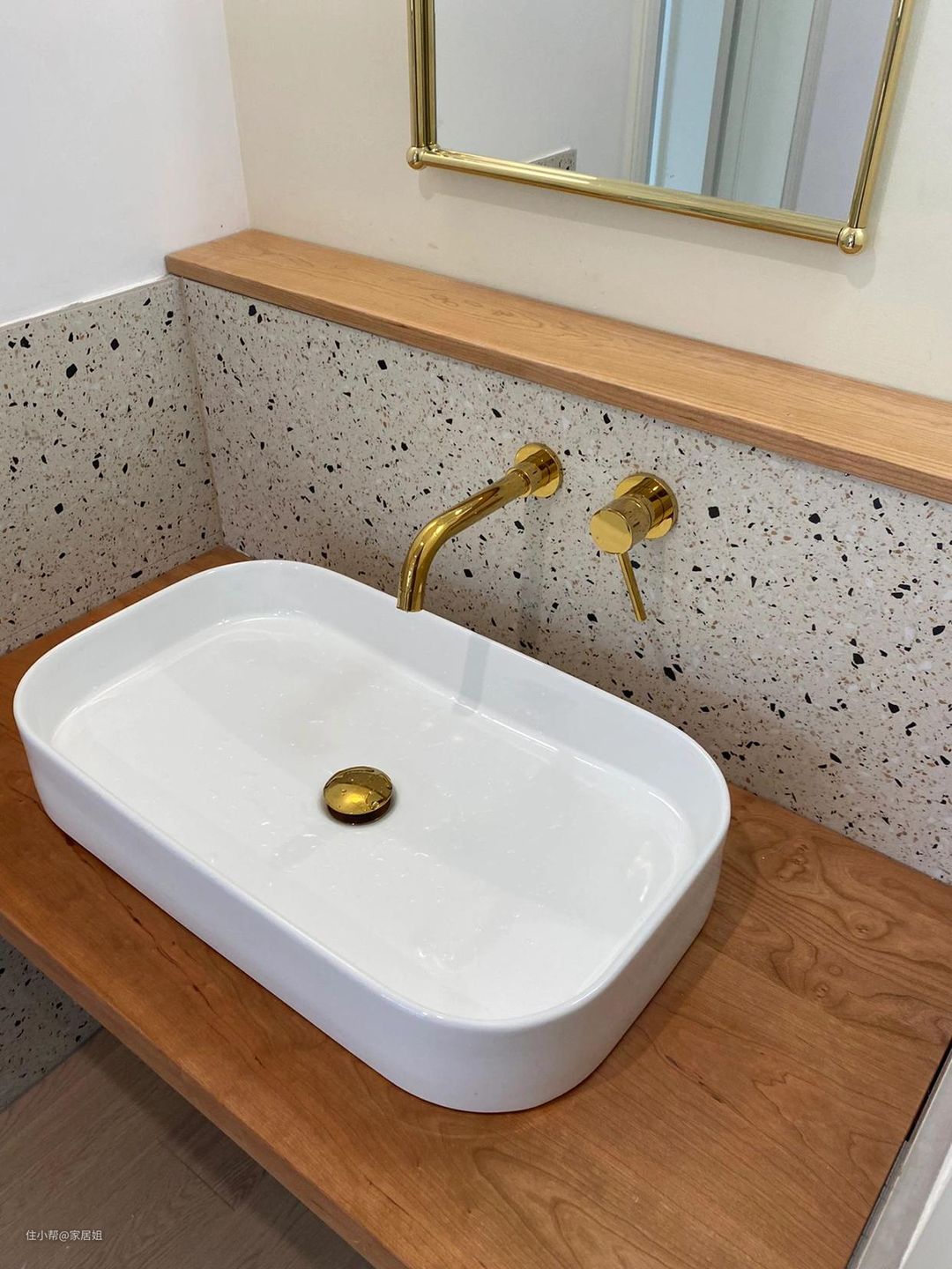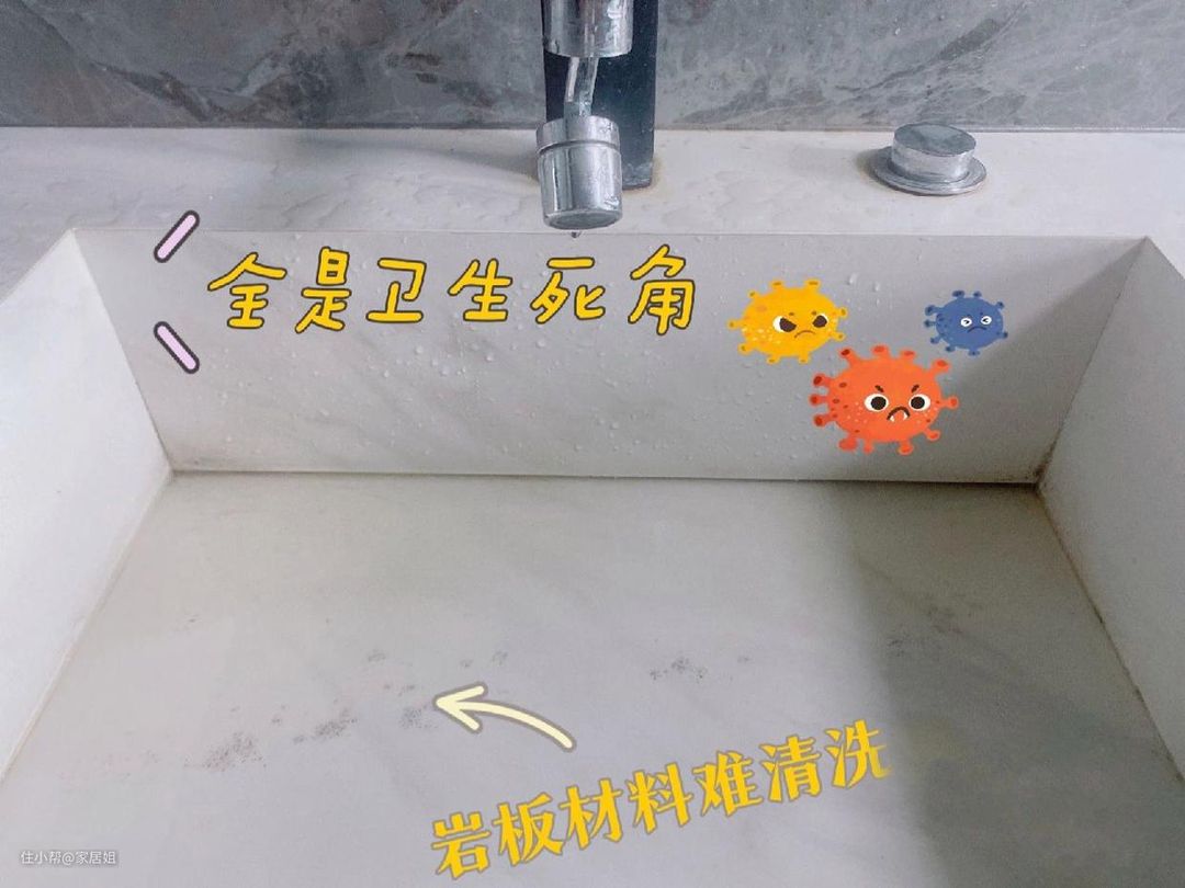 洗漱台盆千万别选岩板材质的,也不要选台上盆,台下盆,这些台盆只会使你徒增烦恼,因为一旦选择它们,到处都会是卫生死角。
