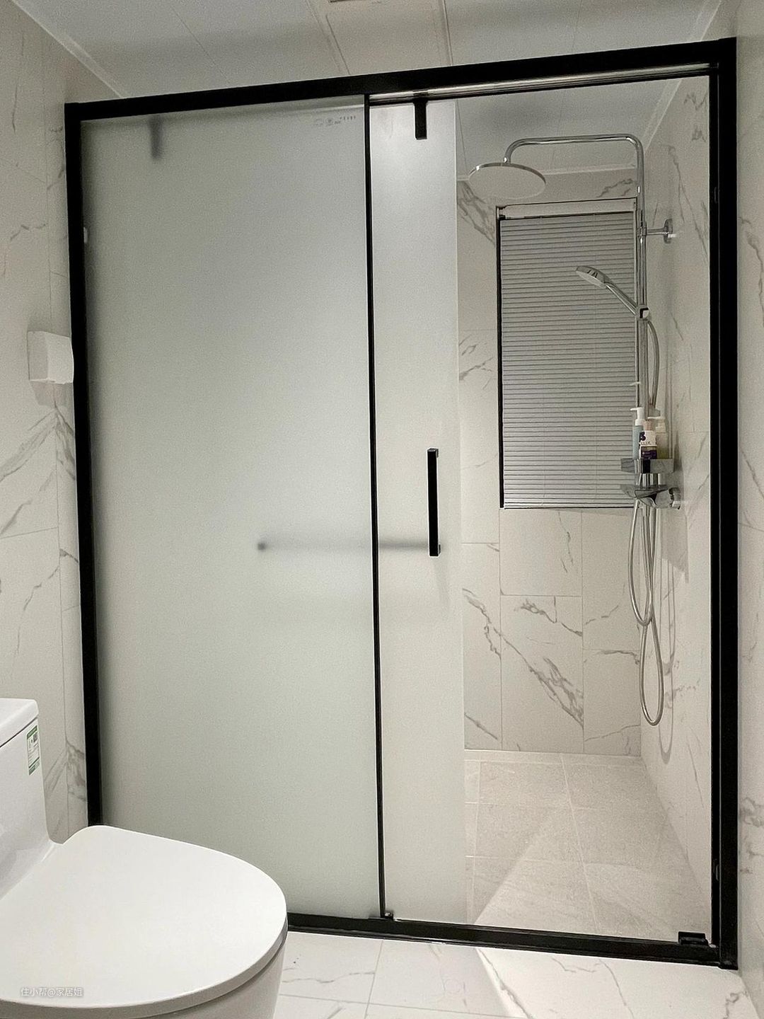 注意:靠淋浴区那边的玻璃要用光滑面的,这样就算有水垢也不容易看到。