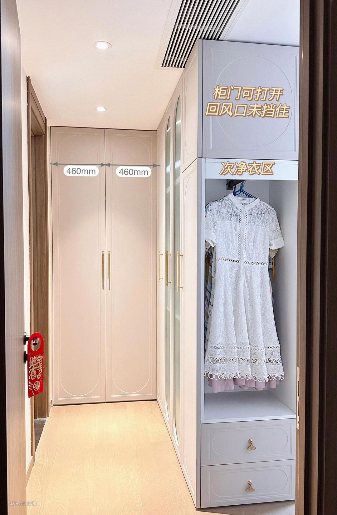 外套一般不会穿一次就洗,也不能直接放到衣柜里收起来,所以衣柜要设计一个次净衣区,放隔夜衣服。