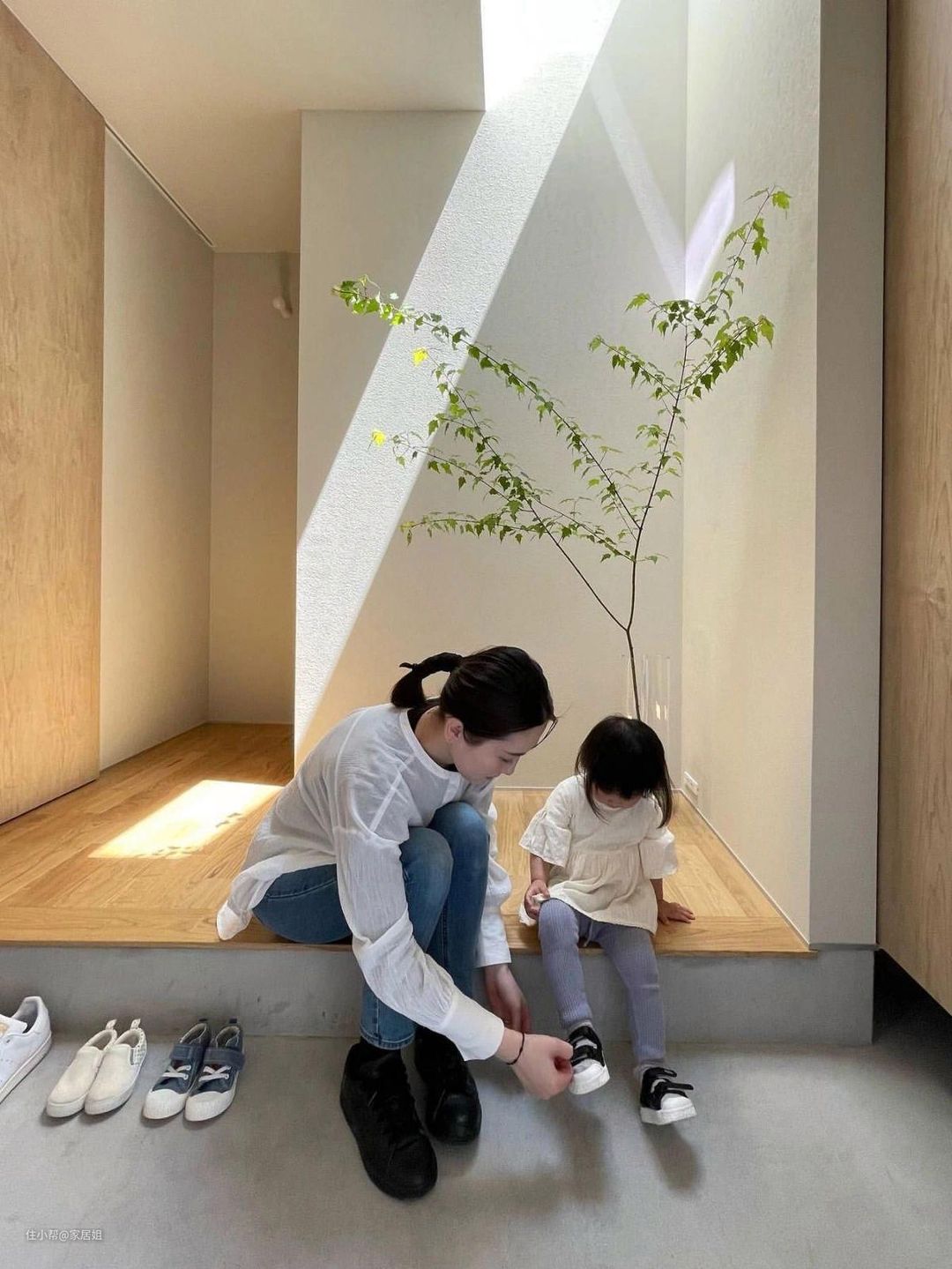 而且下沉式玄关让回家更具仪式感,在换鞋的那片刻似乎听到这个家无声地打招呼:“欢迎回家”、“一路平安”。
