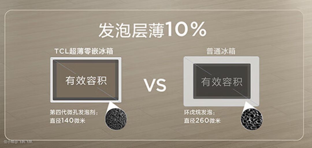 而再加上使用第四代微孔发泡技术,TCL让冰箱门、箱体整体变得更薄,保温性能还进一步加强了,做到了“皮薄馅大”的效果,使得这台冰箱尺寸不大,但容量不小。
