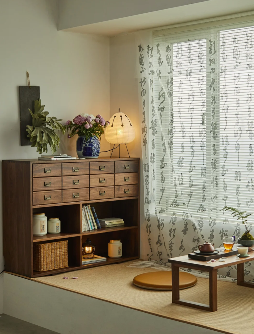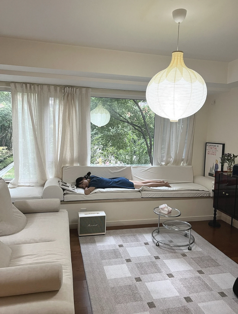 延伸做地台:低飘窗或者落地飘窗,适合向外延伸,打造多功能休闲地台。不仅满足亲子活动、喝茶、瑜伽等,也可以躺卧休息,功能翻倍。