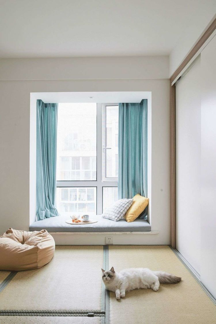 飘窗坐深:60厘米。建议适当向外延伸,坐感会更好,多出来的部分还可以做成储物柜。