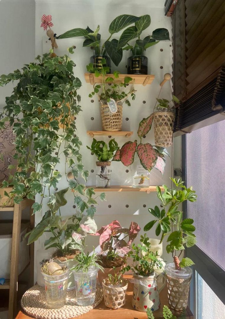 飘窗两侧还可以装洞洞板或置物架,让植物组合搭配,层次感更强。