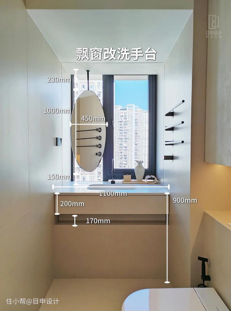 做洗手台:卫生间或旁边过道的飘窗,都可以加高定制成洗手台,不仅节约卫生间面积,也能兼顾收纳。预埋上下水,需要计算好尺寸,下方做U型抽屉,方便检修。飘窗改浴缸:靠近淋浴区可以延伸做嵌入式浴缸,兼顾淋浴和泡澡。原飘窗的位置可以放置香薰、沐浴产品等。查看锦囊原文