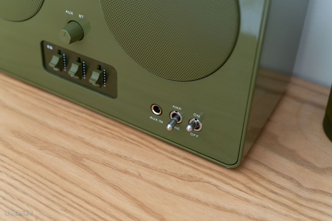 SongBook带有一个6.35mm音频输入接口,支持AUX IN,如果喜欢折腾,可以试试使用有线的方式将播放设备与音箱连接,我的黑胶唱机就是采用有线方式与SongBook连接,而有线连接呈现的声音质量又比蓝牙连接的方式稍好一些,虽然会损失一些方便程度,但更适合“慢节奏”沉下心去享受更好的音乐。