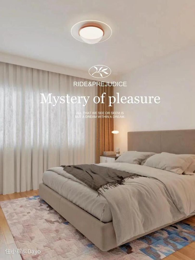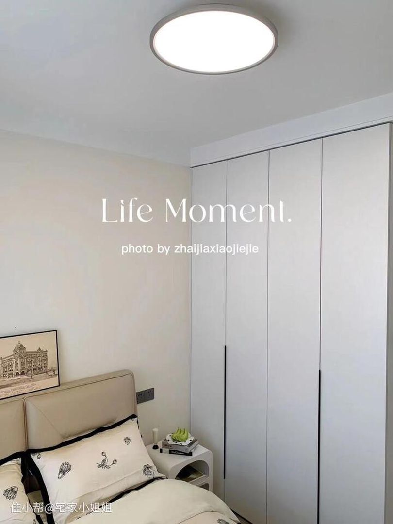 造型简约,显得空间大和通透;智能光效更护眼,可调色温,适应不同生活场景;好打理,不易积灰,小虫也飞不进去,适合层高小于2.8米的小户型。