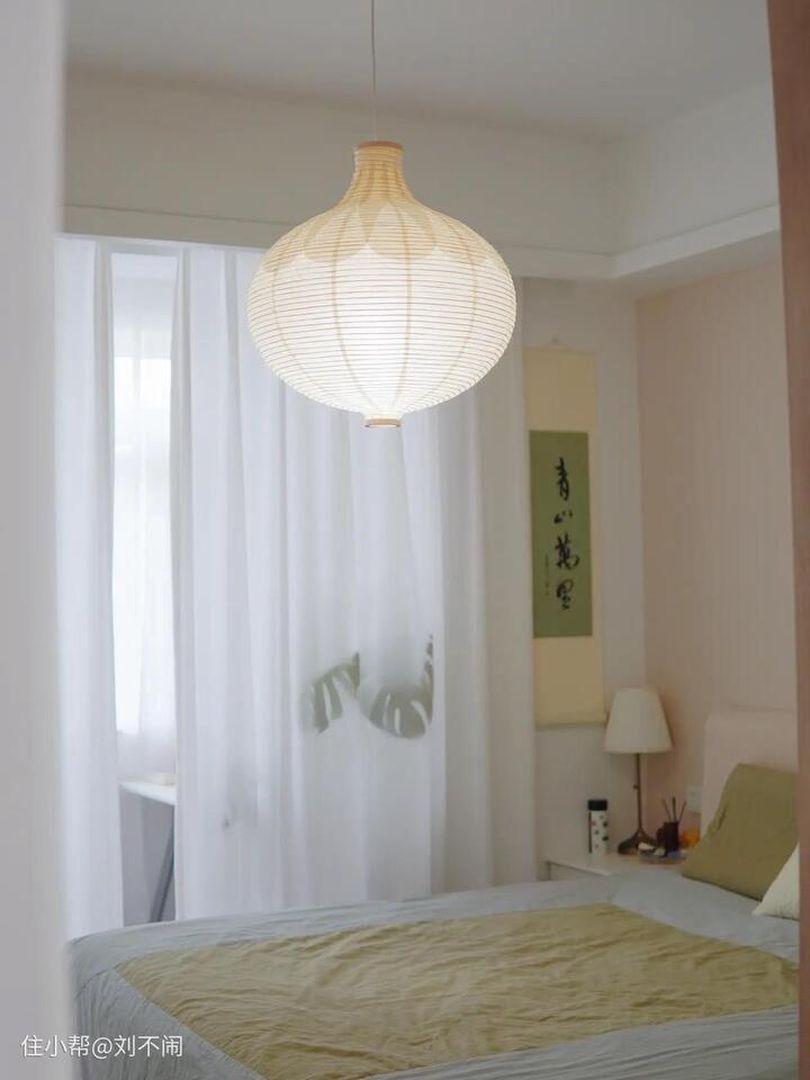 与纸吊灯风格类似,也有蚕丝款可以选择,材质上显得更温润;缺点是后期使用有变色的风险。